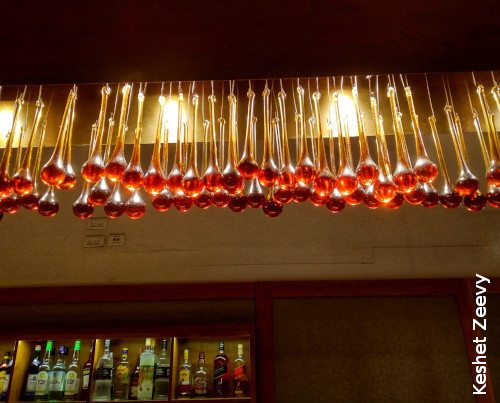 המעליות. פה ישנה אוירה אינטימית המדמה מרתף יין אפלולי, קריר ונעים.